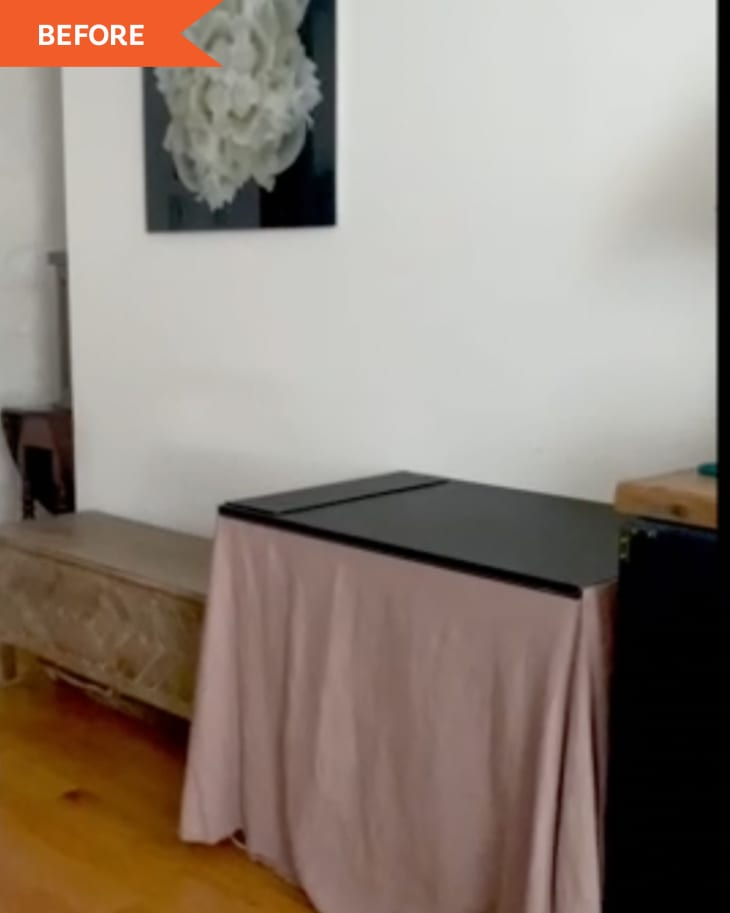 Before & After: A Clever $15 Paint Trick Turned This Open Living Area into a Stylish, Multi-Functional Space With an Expensive, Built-In Look