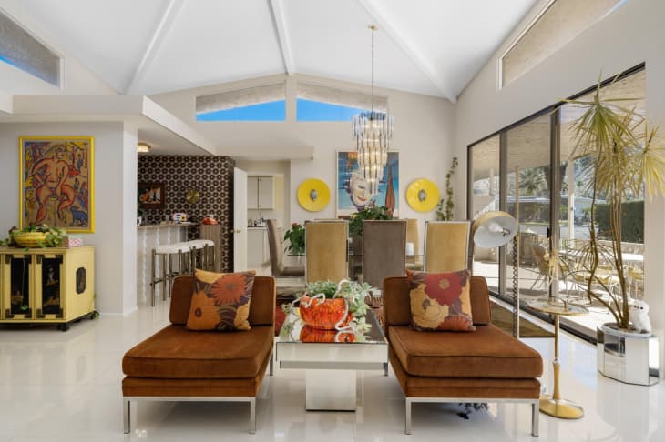 If chunky light fixtures and brown-and-orange wallpaper sound not like outdated accents, but dream home-worthy retro flair, then you’ll want to take a gander at this piece of eye candy for sale in Palm Springs.