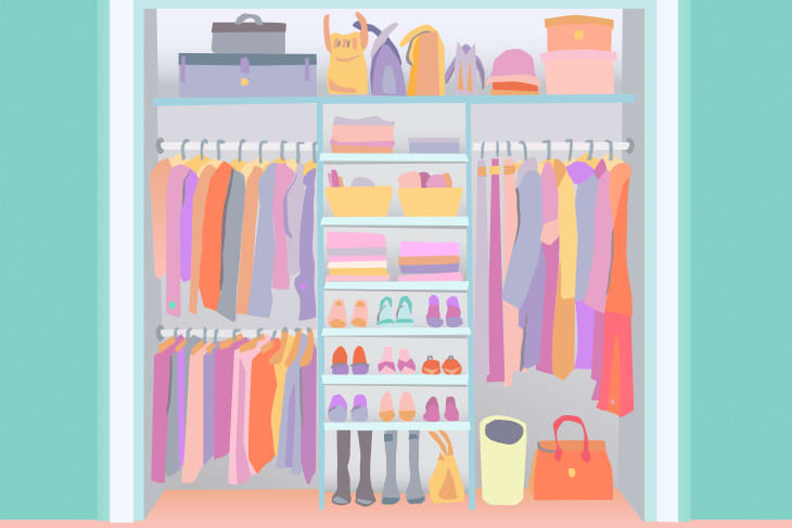7. Invest in a shoe organizer—and actually use it. Boxes, cubbies, tiered shelves, and hanging organizers are all good options, and to make things easier we have a guide to the best shoe storage solutions out there.