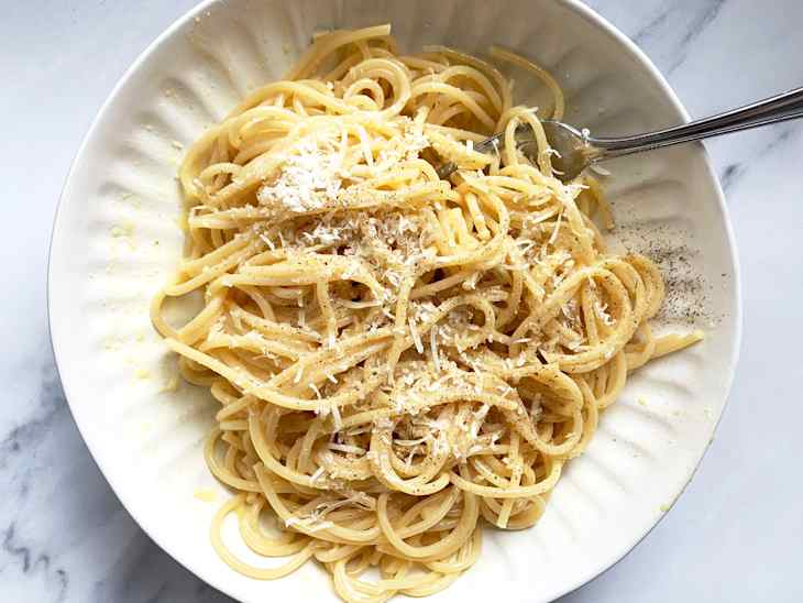 My typical bare-pantry pasta method of simply mixing cooked pasta with butter, Parmesan, and pasta water to make a cheesy sauce has been elevated with the knowledge that by adding a couple of egg yolks, a pinch of mustard powder, and some garlic powder, the whole dish soars to new heights.