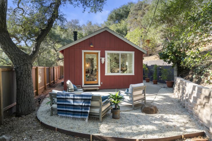 Nestled in a pocket of the Santa Monica Mountains, this 1940s cabin for sale is perfectly positioned to be an outdoorsy getaway for a couple of nature enthusiasts. The tiny 432-square-foot abode sits among a grove of oak trees, boasts access to stunning hiking trails in the state park across the street, and is only a 15-minute drive to the beaches of Malibu.