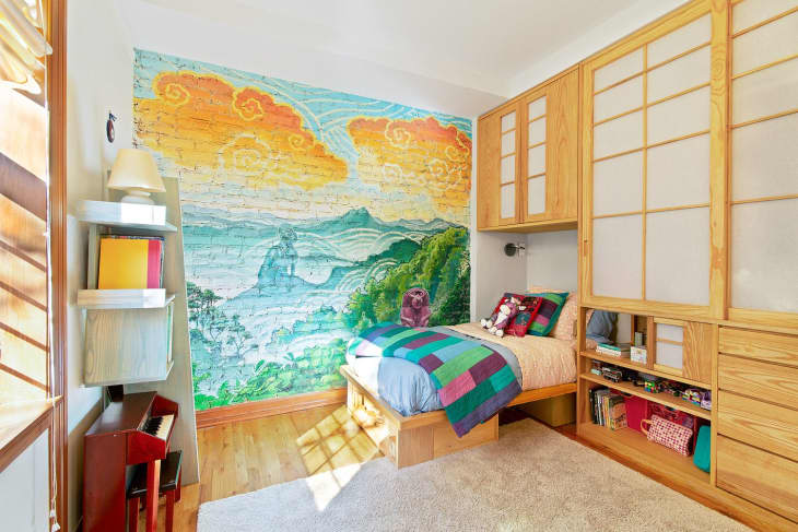 Situated steps from Brooklyn’s Prospect Park and the Brooklyn Museum, this little number packs in a slew of enviable features. A standout for me is the exposed brick in the living room and bedrooms. One of the bedrooms, staged as a child’s room, flaunts a colorful mural over its brick wall — that’s exactly the kind of unique feature I’d need. The room comes with custom closets and shelving, plus plenty of sunlight to boot.
