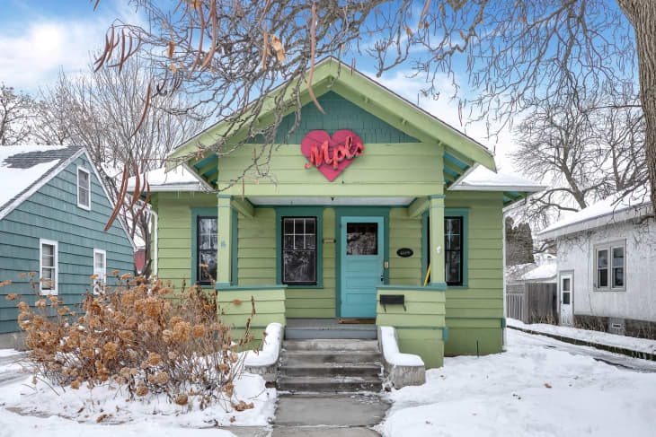 Just in time for Valentine’s Day, the heart-stamped home near Lake Harriet has hit the market in Minneapolis. Built in 1921, the little green bungalow isn’t afraid to show its true colors as a charming alternative to an apartment or condo—vibrant paint choices make the place a cheery escape from winter in Minnesota.