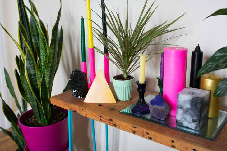 Drip candles never “went out of style” per se; maybe you ‘90s kids out there remember them from the dELiA*s catalogue or Spencer’s like-novelty stores at the mall, and the groovy twists and turns of colorful, dripping tapers in wine bottles were 1970s tabletop fixtures, too. Purposefully drippy tapers are just becoming mainstream and marketable again, and they’re moving off the dining table in some cases and onto mantels and smaller side tables. Urban Outfitters sells a rainbow set (as seen below), Candle Stock has a 25-pack to help you start a “candle mountain,” and you can even snatch up a pair at your local Hobby Lobby. On the luxe end of the market, Diptyque sells a very limited-edition, drip-inspired candleholder collection, with pieces crafted out of solid bronze by artist Osanna Visconti.