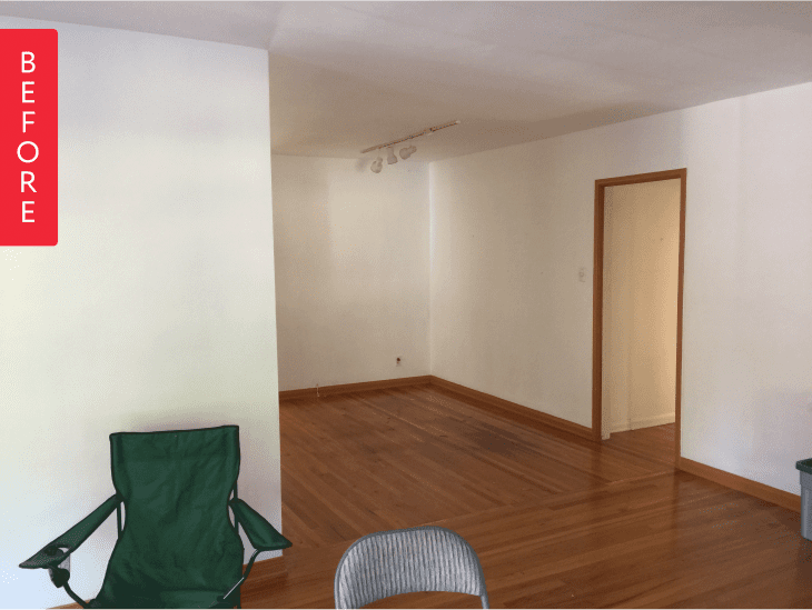 With low ceilings, white walls and track lighting, Matt and Amanda’s post-war den in their California Craftsman didn’t exactly inspire the soul. As two people working in a hectic and creative field (they’re both actors), they wanted to add loads of personality to their small den, while also creating a retreat. In short, they wanted to banish the boring. Their plan? Transform the blank canvas above into a room with English pub vibes.