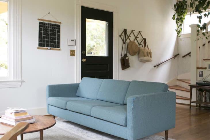 Her plant was already happily existing in a wall-mounted holder, but you could attach a peg rack to the wall above any vine plant on a table or in a macrame hanger. And because of the accordion feature, the DIY wall trellis can grow with your plant — start with it scrunched and then spread it out as your plant takes off.
