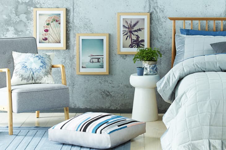 Here’s the same chair as seen in the above blue bedroom scene, this time fitting perfectly into a cream and pink palette. $78.52 USD isn’t dirt cheap for a coverlet set, but it’s certainly not bad.