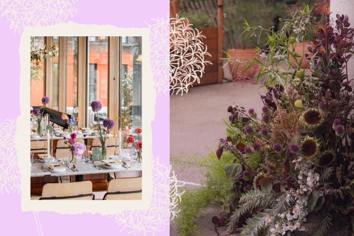 Although alliums aren’t the showiest stems, they’re striking in their quirkiness, which absolutely plays into prevailing trends elsewhere in design right now. Both fashion and interiors are experiencing a foodificaction of everything from color — butter yellow, “tomato girl” red — to decorative patterns, like martini olives and donuts. So it makes sense florals aren’t far behind this curve. “There is a current floral trend that involves integrating florals and food, especially fruits, vegetables, and herbs,” says Cohen.