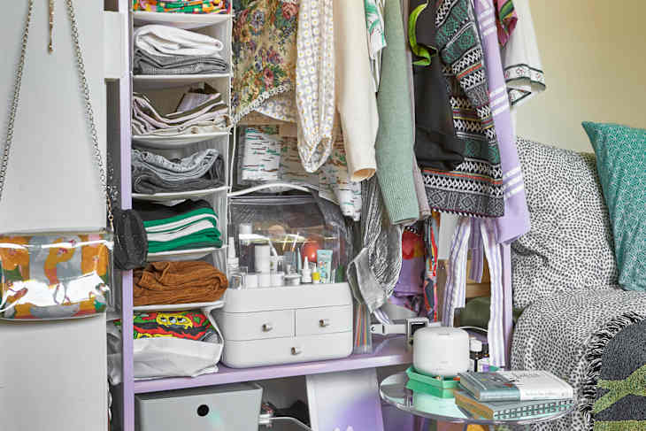 Plus, you can basically store these bins anywhere — in your closet, on shelves, in your dresser drawers, or even in a hanging closet storage piece like this closet organizer from Target.