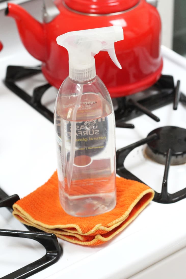 You can make your own all-purpose cleaner using three basic, inexpensive, non-toxic ingredients. You can use this cleaner for everything — from streak-free mirrors to wiping out the cat litter box. I keep it pre-mixed in a reused windex spray bottle for easy access.