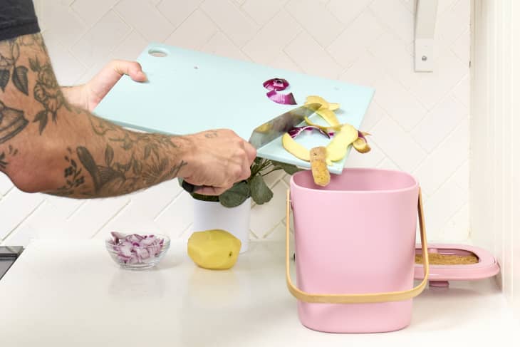 “If you are storing food scraps on your counter, which is what I do at home, I highly recommend a countertop bin with a charcoal filter inside the lid,” Panaro says. “It really helps eliminate any issues with fruit flies, especially in warm weather.”