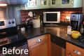Faced with two sets of mismatched cabinets in her otherwise dreamy kitchen, Alana decided to paint the lower deck of cabinetry to complement the upper deck. After a lengthy color selection process, Alana dived into the project and the results are gorgeous!The upper deck cabinets in Alana’s kitchen are the vintage windowpane variety that were original to her bungalow — but the lower cabinets are all new.