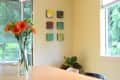 I love it when readers leave links to their blogs in comments, which is how I found out about this project from Gloria at A Little Paint. She commiserated with my can’t-paint-another-stroke pain by showing a room makeover she took on earlier this year. The “after” is proof that a little paint can make the biggest difference in the world.I am so impressed by how Gloria transformed this once boring room, from the eye-catching detailing on the ceiling to the cool ombre cabinet.