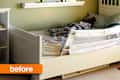Many of the ‘Befores’ of our Before and After posts are hopeless spaces where any bit of attention would be a marked improvement. But sometimes the room itself is fine and it is the needs of the occupant that dictate the change. In this case, a little sister was moving into her big brother’s room. To make things interesting, the makeover was a birthday surprise and had to be completed in just one day. The suspense is killing me!Voila!