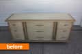 Before & After: Cristin’s Mod Podge Buffet MakeoverWhen Cristin and her husband found this dresser on the curb in their neighborhood, it quickly became apparent why no one had grabbed it first: it’s huge, heavy, and covered in dated white veneer. But with a little vision and a ton of Mod Podge, this beast became a buffet. From Cristin: Last summer, while hosting a garage sale at my house, my husband came home from work and told me there was a buffet table out to the road in our neighborhood.