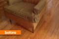 Joy’d been stalking Craigslist for months in search of the perfect armchair for her living room, but finally struck gold at her favorite thrift store (and by gold…we mean orangey-brown) for a mere 17 clams. Says Joy, “I like to think that it found me. Atrocious orange? Check. Disintegrating foam? Check. Beautiful bones? Check. Check.