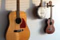 5 Simple Yet Stylish Ways to Display Stringed InstrumentsGet those instruments up off the floor! I never thought I’d be the type of person to display a guitar, a banjolin and a ukele on my wall, but now that I’ve done it I actually think they look quite stylish! Hanging them on the wall keeps them safe from harm and available to play all the time. During my hunt for inexpensive string instrument mounts, I found a handful of gorgeous — mostly handmade — ones that I would love to invest in some day. Take your pick! (Pun intended.