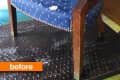 Before & After: Natalie’s New, Blue Chair SpecialNatalie’s been rockin’ this chair for about a year — she picked it up at a yard sale for only 10 bucks. But when the already-worn seat fabric began to develop huge tears, she knew it was time for a revamp. She ditched the old, ripped fabric in favor of two different ikat prints. She stripped and sanded the wood frame and then stained it a warm, deep brown.