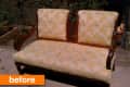 Before & After: A Sturdy Settee Gets a Makeover for a Patio!On the hunt for something that would fit perfectly in their covered patio area, Lauren found this interesting loveseat on Craigslist for just $30. Sturdy, it had potential, and Lauren took it home to add her own personality to it. From Lauren: The wood on this seat was fully refinished and repaired before it was adorned with this native-inspired wooly fabric. The upper back rest was finished with a soft suede-like fabric and finished off with matching tufted buttons.