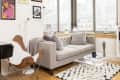 Molly’s 520 Square Foot Soothing Manhattan StudioName: Molly Torres Location: New York, New York (Midtown) Before I started school, my boyfriend and I found the perfect (and affordable) 520 square foot studio apartment in midtown last summer — centrally located to school, for me, and work, for him. Though I only had a minimal budget to work off of, I was extremely excited for the decorating challenge. Within the small space, I wanted to create a functional entryway and a “separate” living area, dining area and bedroom area.