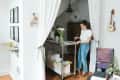 A TV-Free, 600-Square-Foot Shared Chicago Apartment Fosters CreativityName: Katherine Corden and her fiancé Dave Location: Lincoln Park Neighborhood — Chicago, Illinois Size: 600 square feet Years lived in: 1 year, renting Dave and I moved in together about one year ago, around the same time we got engaged. We both are physical therapists full time but when we’re not working, we are pursuing our creative passions! Dave loves playing guitar and learning new music, and I am working to grow my fine art business.