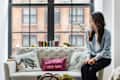 Name: Christina and Thejas; Cats: Oliver and Teddie Location: DUMBO; Brooklyn, New York Size: 1,080 square feet Years lived in: 7 months; Rented When Christina and Thejas were looking for a new apartment last summer, they searched for a place that had luxury amenities, but still had character and charm. What they found was a modern apartment in an old factory building in DUMBO. And with Christina’s flair for accessorizing and adding color, they brought the space to life.