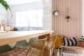 Lj and her partner Nick have converted this former bungalow into an airy and light family home thanks to lots of fun ideas, like DIY wood wall paneling, creative wall paint jobs, and even making a lightshade inspired by a higher-end item.
