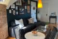 Julie Finn has done tons of things to make her small space work, from a hand-me-down daybed to couch transformation, an easy TV-hiding hack, and creating as much smart storage space as possible.