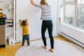 “I got creative with fun ways to add color and personality to blank walls — DIY fabric wallpaper, gallery walls, vintage plates, pennants, and book pages have been some of my favorite paint alternatives,” explains Marissa Zingg.