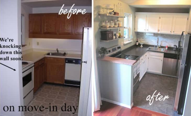 I know, I know, they did more than just knock out a half wall, but I would argue that it was the half wall removal that really made the difference in this kitchen. If they had done nothing else, the half wall removal would have transformed this kitchen completely. Find out more after the jump.