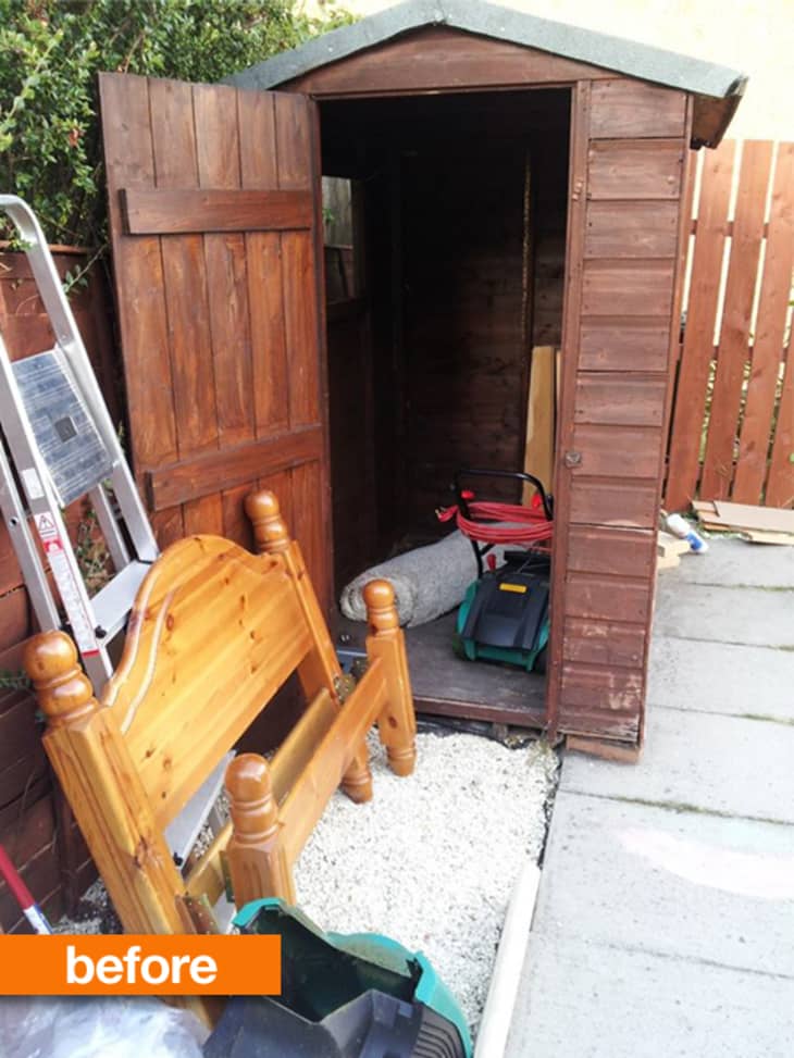 Irina had a few extra things taking up space in her garden so she found a way to transform a boring brown shed, an old bed and an IKEA side table into a wonderful surprise for her daughters.