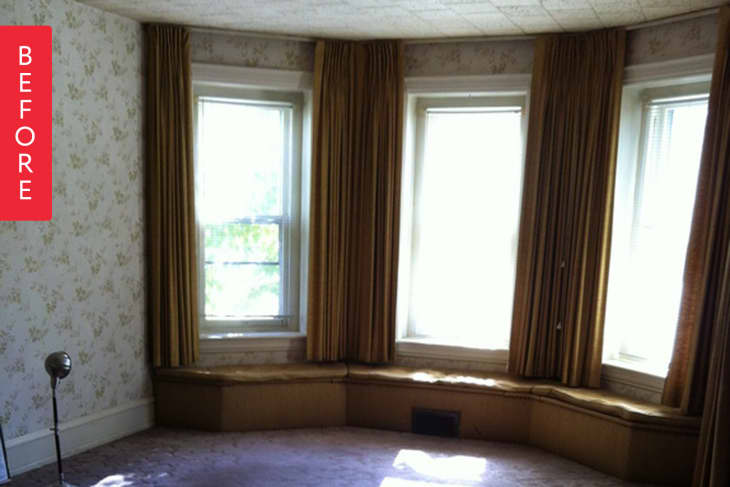 Old wallpaper, grimy carpet, golden brown curtains—wow! The “before” was a little scary. But check out the after: