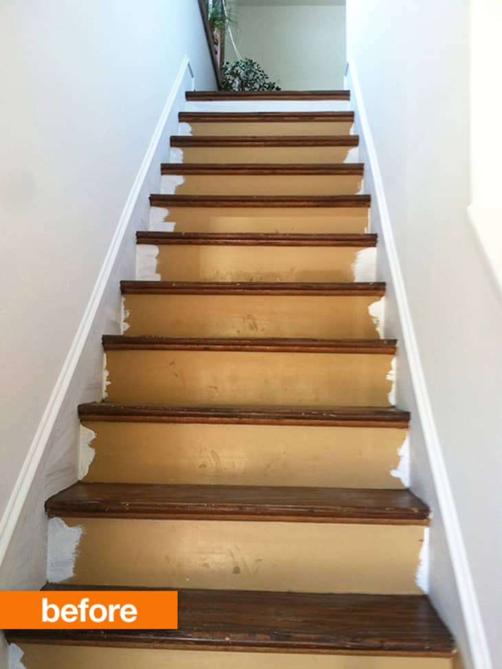 She painted the risers a cool, ocean-inpired blue and topped off the staircase with an old surfboard. No word on whether their adorable dog is much of a swimmer, but it seems like they’re all enjoying the new look.