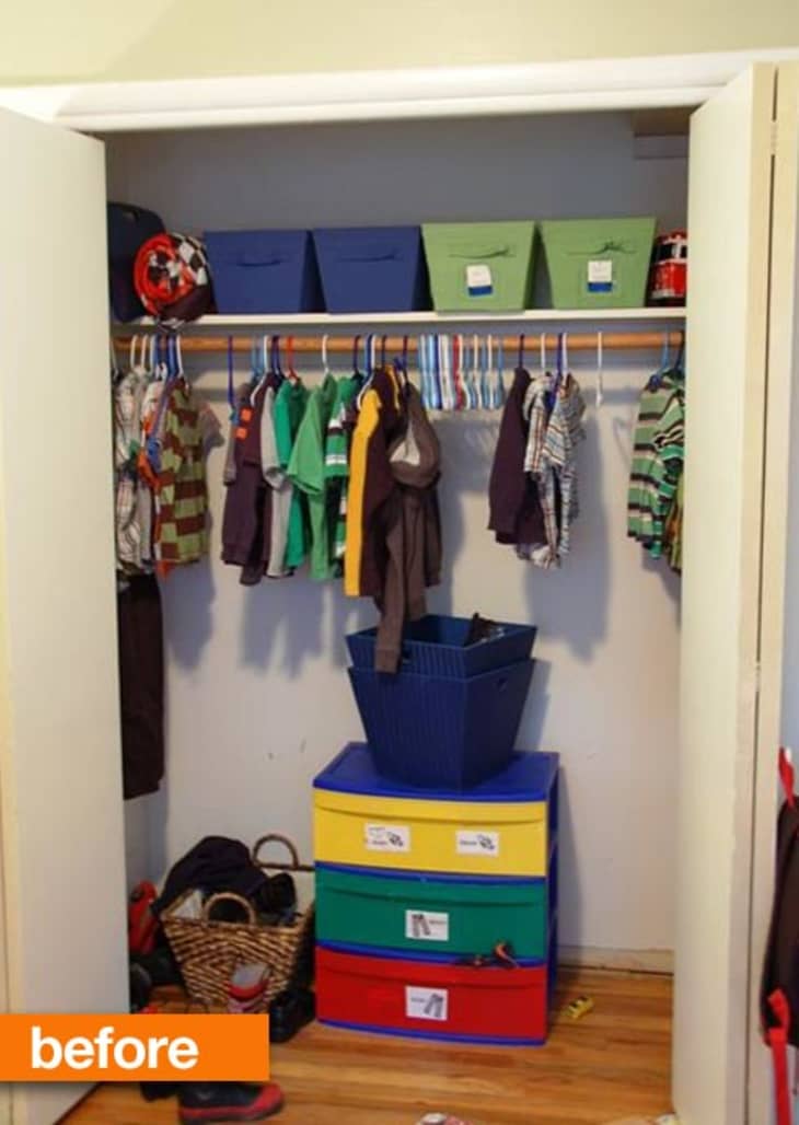 While Anna’s mid-century house has a fair share of closets, they weren’t exactly outfitted to store much stuff. Faced with the predicament of storing two young boys’ clothes and other belongings, Anna decided to build out the closet herself.
