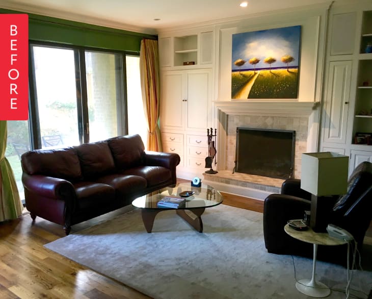 “The living room in our new home was beautiful, a stone fireplace, floor to ceiling custom cabinets, reclaimed and restored hardwood flooring from a 100 year old barn in Vermont. Yet when it came to our furniture, we were forcing our old sofa, acquired in our 20’s while living in a cobbled-together NYC apartment with multiple roommates to fit our new surroundings. The seal brown leather 3-seat sofa made the room, with windows on just the east wall, feel sunless and gloomy for too much of the afternoon. Additionally, after trying different furniture arrangements, we couldn’t find a layout where we felt the room was a finished product.