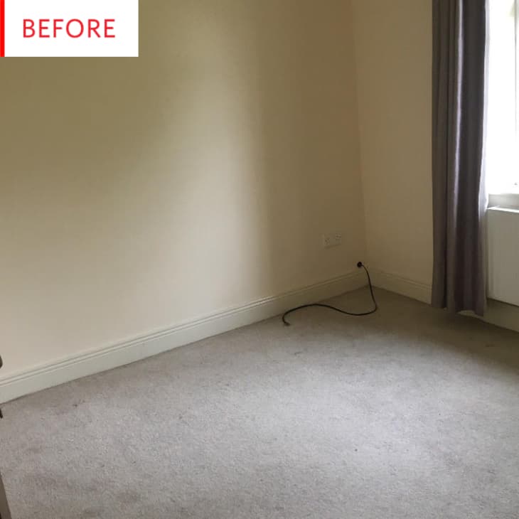 “It is a shared room for our two daughters, and while we were desperate to lighten and brighten the space, we also wanted to ensure it appealed to both a 6-year-old and a 6-year-old,” Gill says. Before, the room had “a musty cream carpet and yellowed cream wall, which were our top priority to change.”