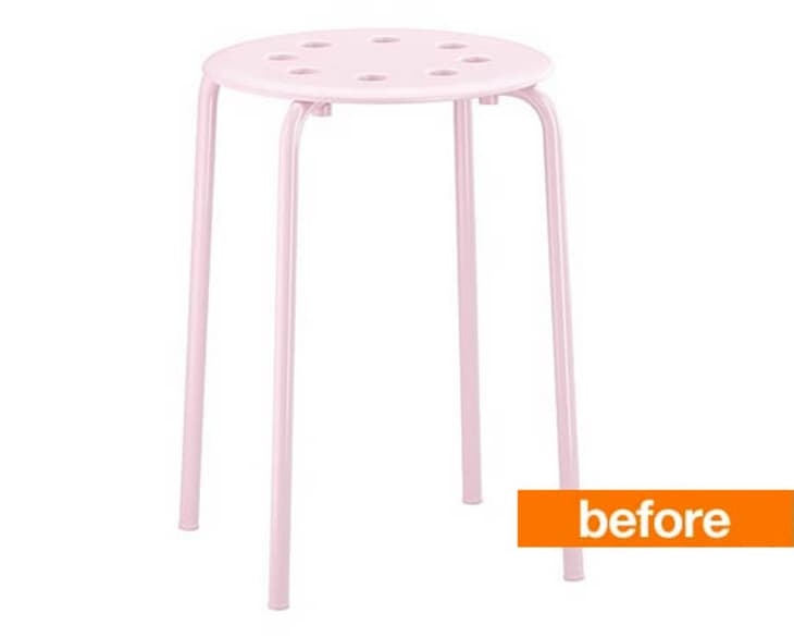 That’s quite the upgrade, no? Nadia started with an IKEA Marius stool (which seems to be available in black, white, and blue on the U.S. site, but in Europe can also be had in pink and turquoise). She added upholstery foam to make it comfortable and the curly fur from a Mongolian lamb pillow, and no one would guess the final product started life as a $6 stool from IKEA.