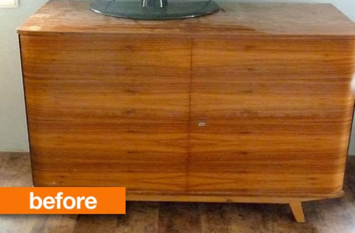 This piece of furniture got a full on Art Deco Makeover. The original style of this piece didn’t fit into the rest of the home’s decor, so it got sanded, painted and pounded. It took 1300 upholstery nails to get it to its final state. That is some serious dedication. To see the step-by-step details, check out Akicsihaz. (The original page is in Hungarian, but you can use Google Translate to help you out if you’re not fluent.)