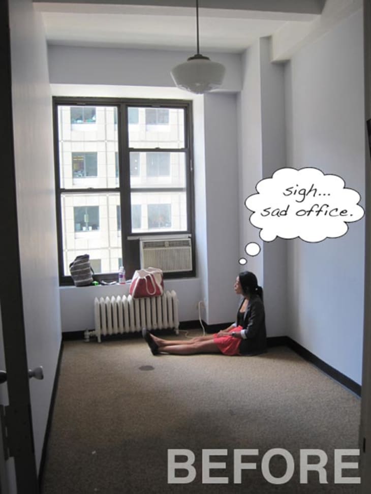 Jen emailed us a link to the office she dressed up for her friend Natasha. As a rising star in fashion PR, Natasha needs a space that exudes simple style. So over a weekend, Jen turned Natasha’s sad space into a stylish office.