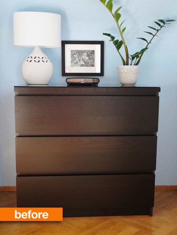 Maggie’s IKEA MALM dresser was super functional but pretty plain, so she got creative and gave it a budget makeover that adds plenty of glam style.