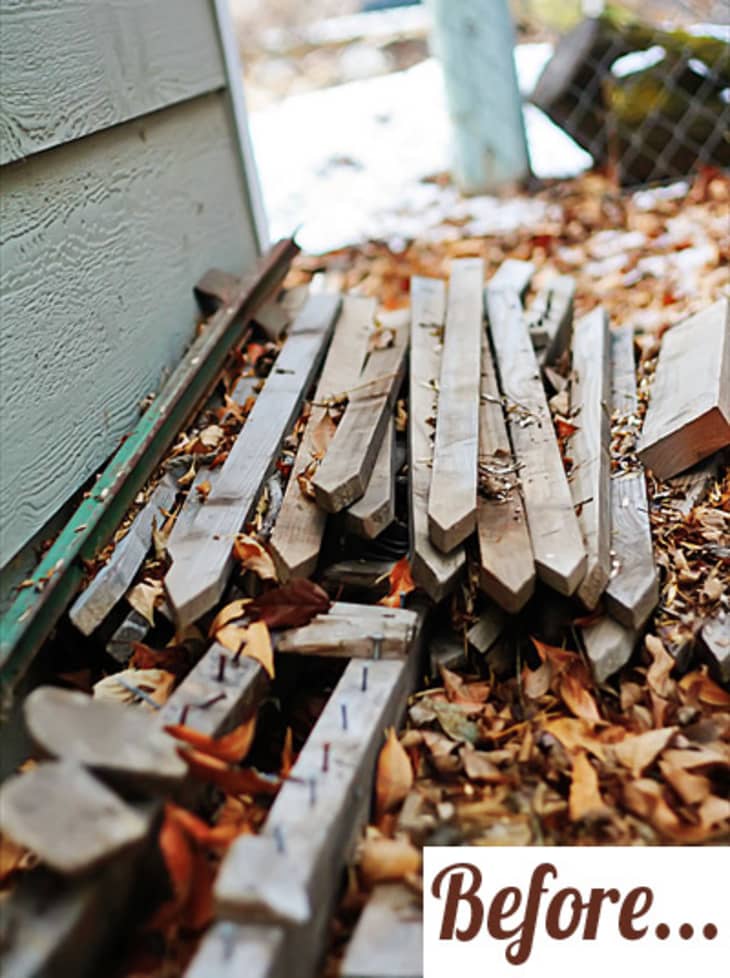 It’s been raining buckets throughout much of the Midwest for the better part of the weekend and it seems as though my galoshes have never seen so much use! Although I’ve previously mentioned using a baking sheet as a quick boot tray, check out this DIY that all started as a scrap pile of used fence posts!