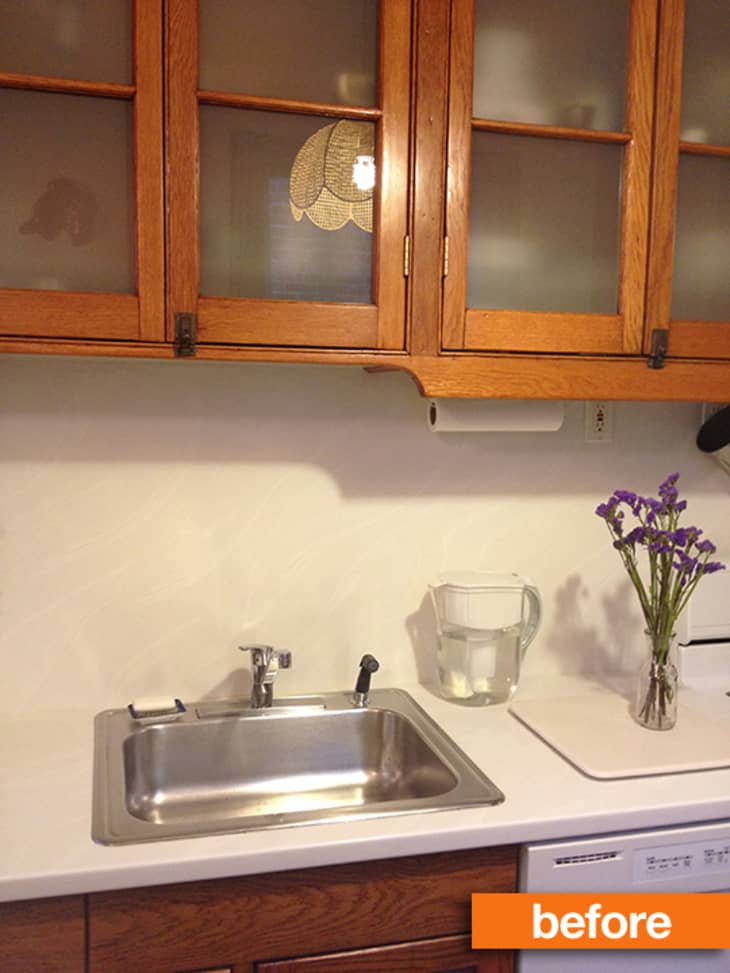 When Sarah, an editor at Vanity Fair, and her husband Michael, a writer for Bloomberg News, bought their home on the Upper East Side, they knew the kitchen could use a little work. Their apartment, which dates back to 1910, hadn’t had many improvements since then. The kitchen, in particular, was a strange mish-mash of styles: the upper cabinets, original to the apartment, were beautiful, but riddled with wood putty spots and pockmarks from the past 100 years. The lower cabinets, a more recent addition to the home, were in great condition, but their high-varnish reddish oak finish clashed with the rest of the kitchen. What to do?