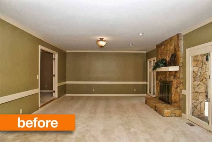 Tasha tells us that she still cringes when she looks back at these photos of her room. The army green walls, the beige trim, badly sealed stone fireplace and carpet just weren’t her cup of tea. Says Tasha, “No thank you.”