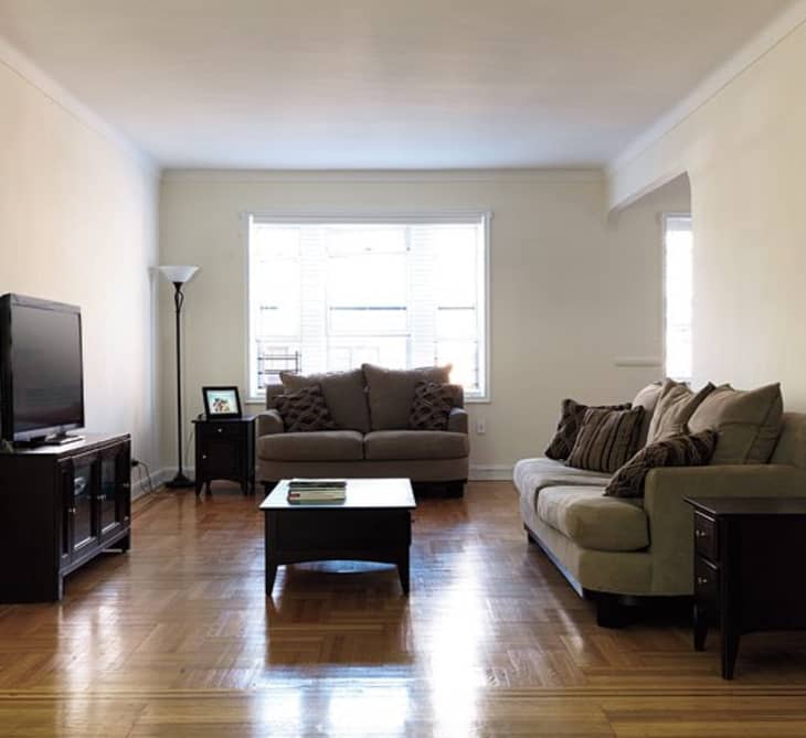 Shanta lives in Forest Hills in a prewar one bedroom apartment. Spacious and with good light, this living room has lots going for it, but lacks color and a real sense of Shanta’s personality. Everything matches, which while not a bad thing, can feel too safe and sterile. The team at Real Simple turned things around…
