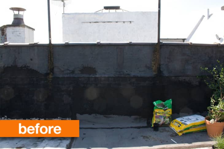 When Jessica bought her first place in Brooklyn earlier this year, it came with a grotty tar wall on the roof. Obviously this was not the outdoor oasis she had in mind. Read on to see her solution.