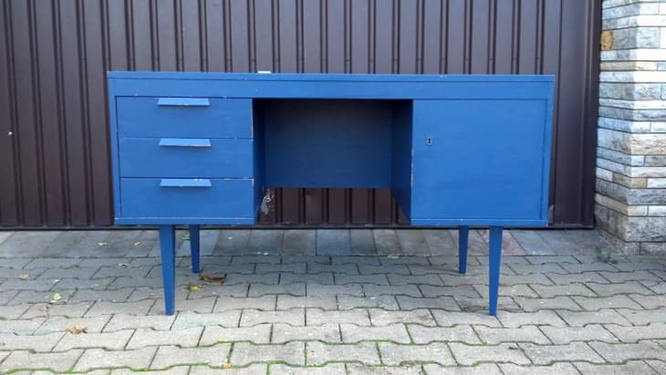 When Maggie found this great mid-century desk at the thrift store it was feeling a little blue, but for only $14, she took it home anyway and got right to work.