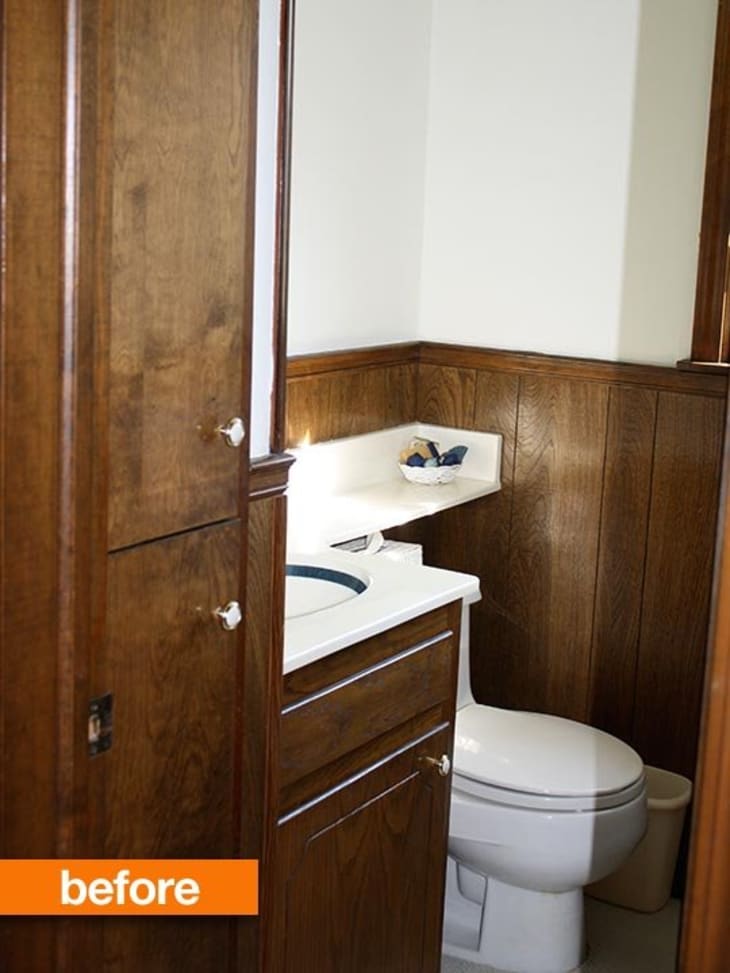 Julie remodeled her dark, out-dated half bath right after moving in, but it took awhile to finish the room completely. She moved on to other projects until she found the perfect chandelier to cap off the space. That motivated her to finally put the last finishing touches in place.