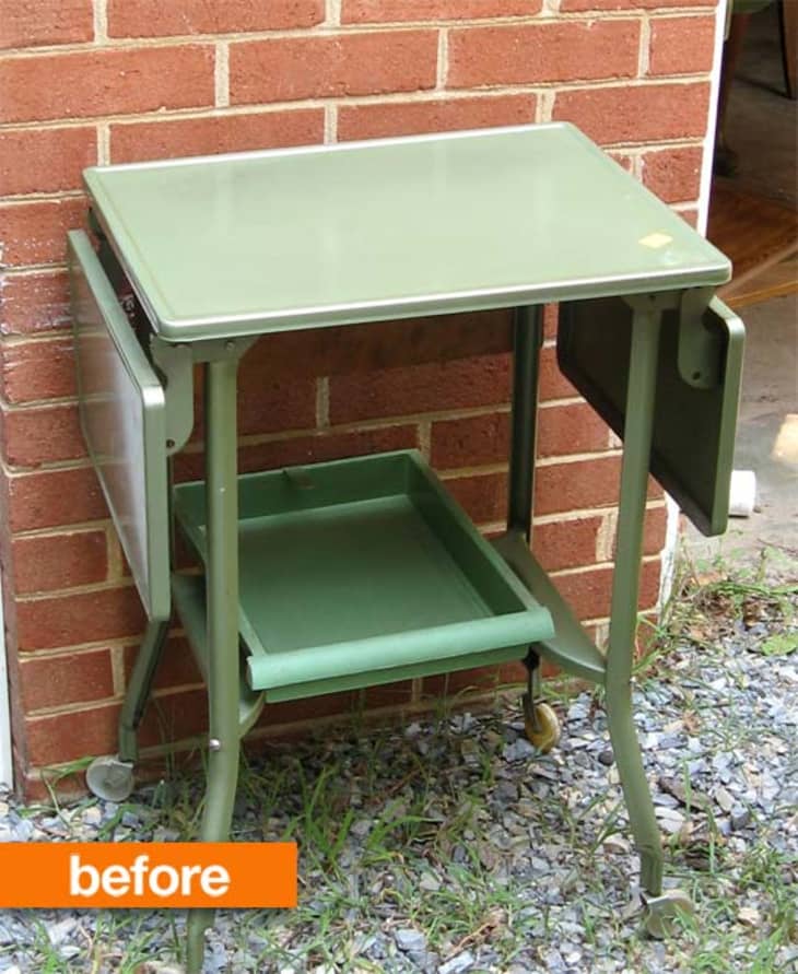 Carrie obviously has better yard sale luck than most of us, as she was able to pick up this darling vintage typewriter table at a local sale for only $4 — an astonishing deal by any standard. When she bought it, Carrie already knew this table was getting a cartographic makeover.