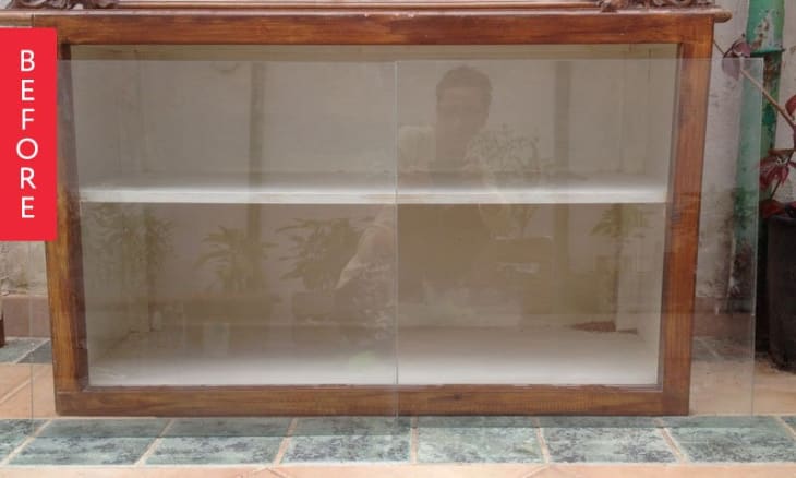 Lucia found this old wooden cabinet with sliding glass doors, and immediately saw an alternate use for it. Instead of a wall-mounted unit, she transformed it into freestanding furniture that better suits her needs, all for a minimal cost…