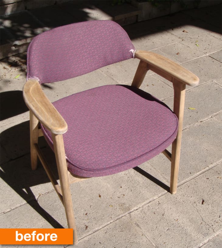 Stef stumbled on this $7 chair in a thrift store in Iowa while visiting her little brother in grad school. As a resident of California, she didn’t quite know how she was going to get it back home, but for $7, she’d find a way (thankfully her frequent traveling mom helped out). Once home, it sat as-is for another three years. “I stared at it, threw a sheet over it to give guests the appearance of a ‘project-under-construction’, even tried a few different paint colors to get some inspiration.” So what prompted a makeover finally? A perfect floral fabric found on eBay. See what she did!